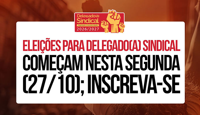 As inscrições para concorrer ao cargo de delegado(a) sindical – exercício 2026/2027 - estarão abertas de 27/10 até 10/11, das 8h às 18h.
