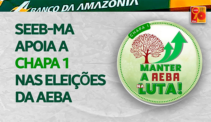 O SEEB-MA declara seu apoio oficial à Chapa 1 - Manter a AEBA na Luta nas eleições da Associação dos Empregados do Banco da Amazônia (AEBA), que ocorrerão nos dias 29 e 30 de outubro.
