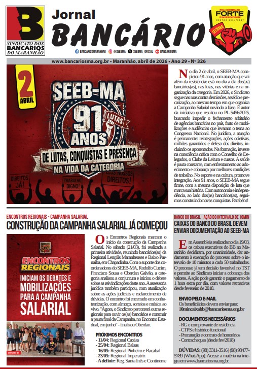 © SEEB-MA. Sindicato dos Bancários do Maranhão. Gestão Trabalho, Resistência e Luta: por nenhum direito a menos!