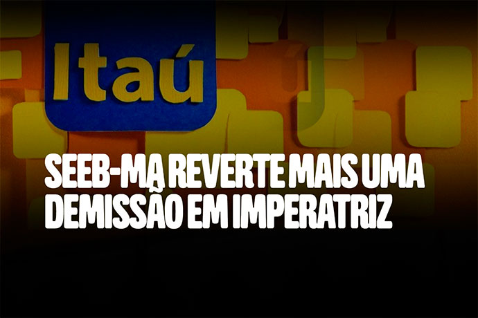 Vitória! O SEEB-MA reverteu a demissão de mais uma bancária do Itaú em Imperatriz. A trabalhadora, com 23 anos de banco, havia sido demitida mesmo apresentando problemas de saúde relacionados ao local de trabalho.