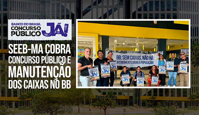 O SEEB-MA realizou, nesta terça-feira (28/10), um ato público no Banco do Brasil da UFMA, em São Luís, para exigir concurso público imediato e denunciar os prejuízos causados pela desativação dos caixas pela falta de funcionários.