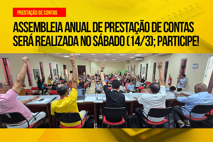 Assembleia de Prestação de Contas será realizada no sábado (14/3). Participe!